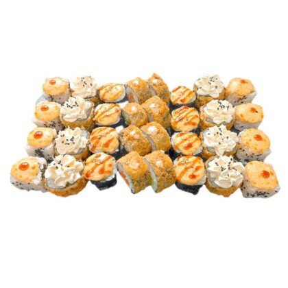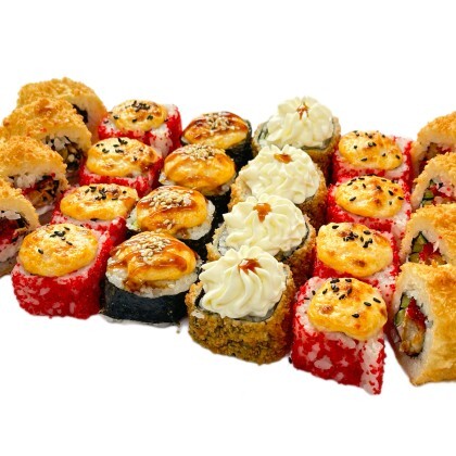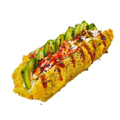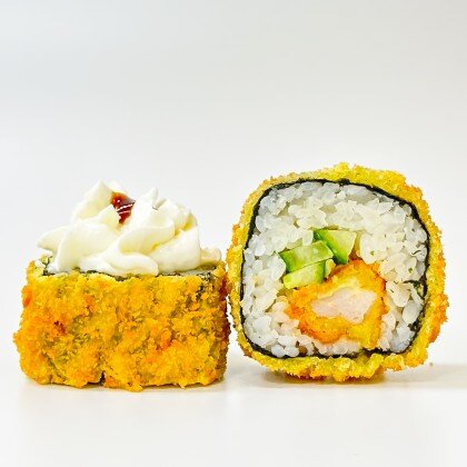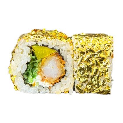 Лосось, авокадо, огурец, сыр сливочный, тобико, золото пищевое, нори, рис