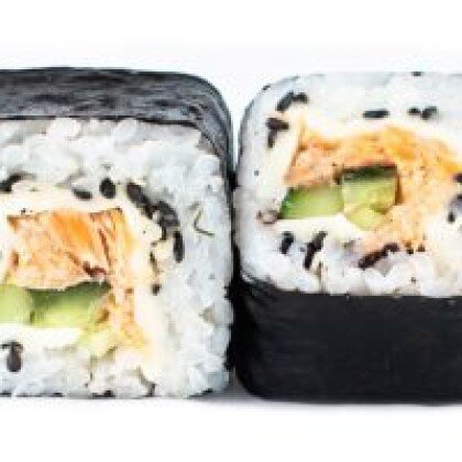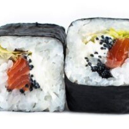 Нори, рис, сливочный сыр, свежий лосось + лимон